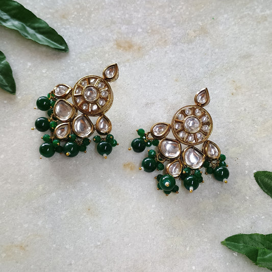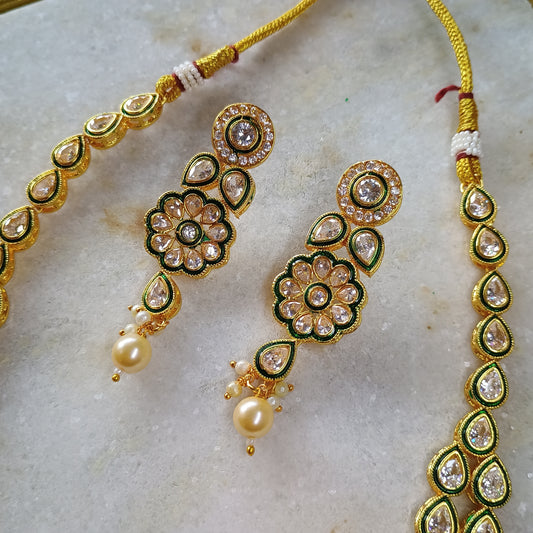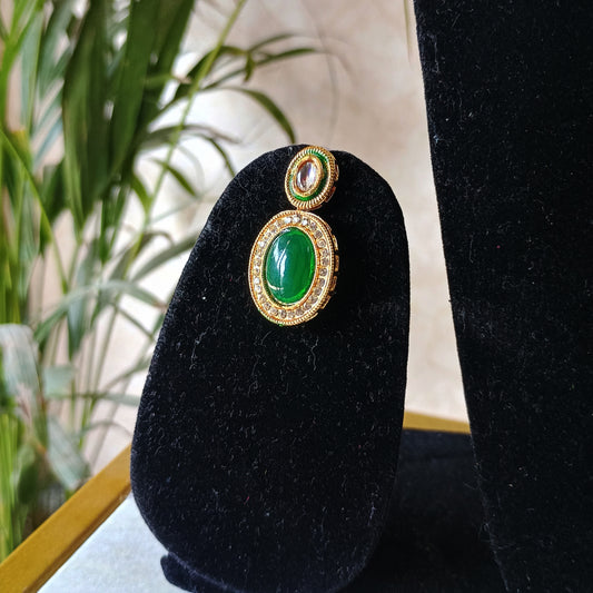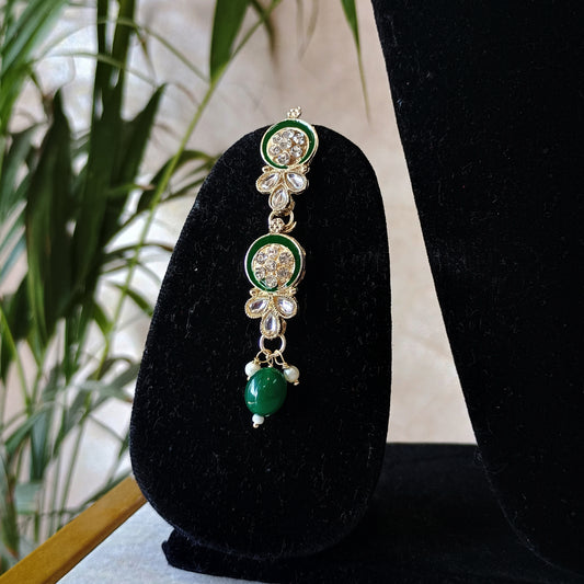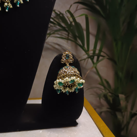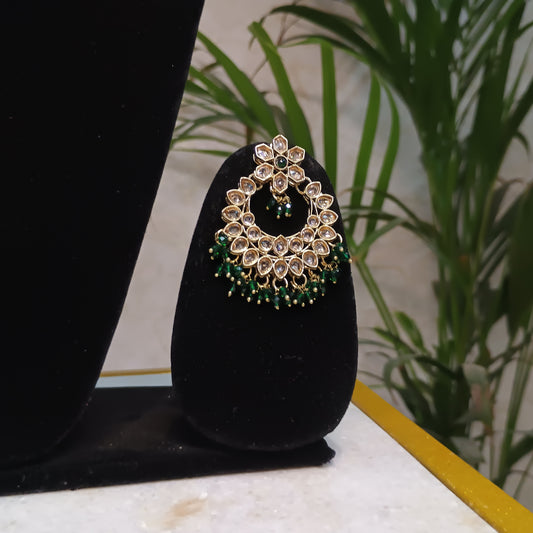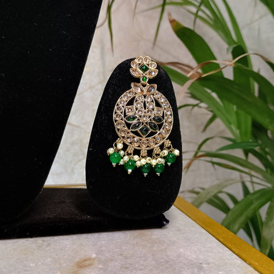 Gold Plated Green Stone Jewellery Set with Maangtika