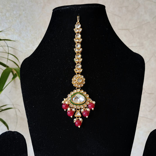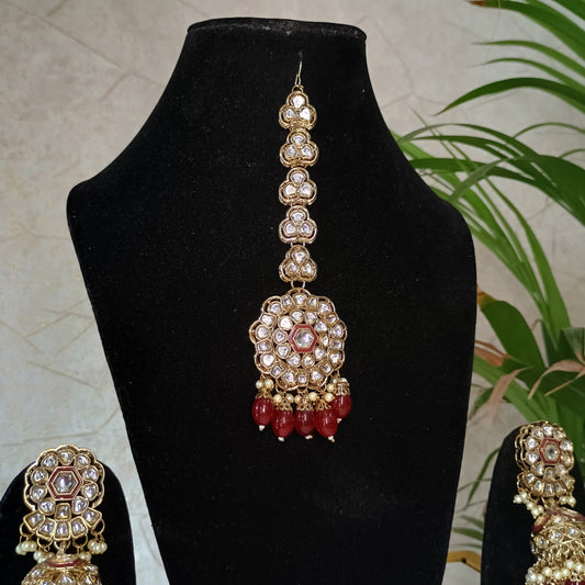 Elegant Kundan Red Stone Jewellery Set with Maangtika