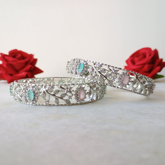 Pink Stone Silver Plated AD Pendent With Earrings and Ring