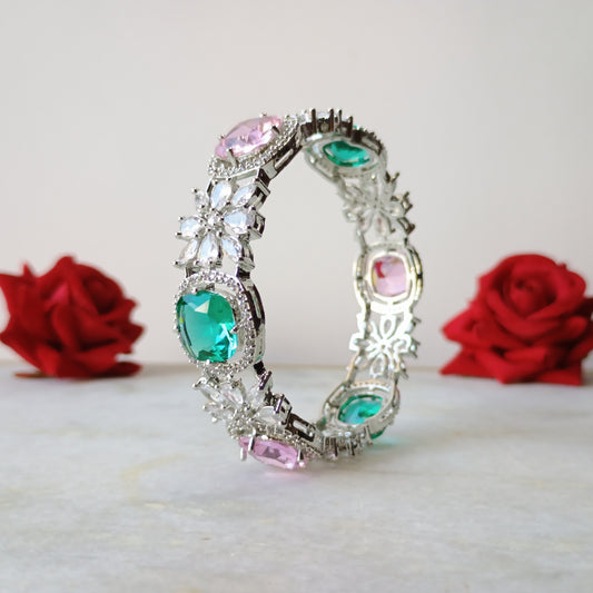Emerald Silver Plated AD Pendent With Earrings and Ring